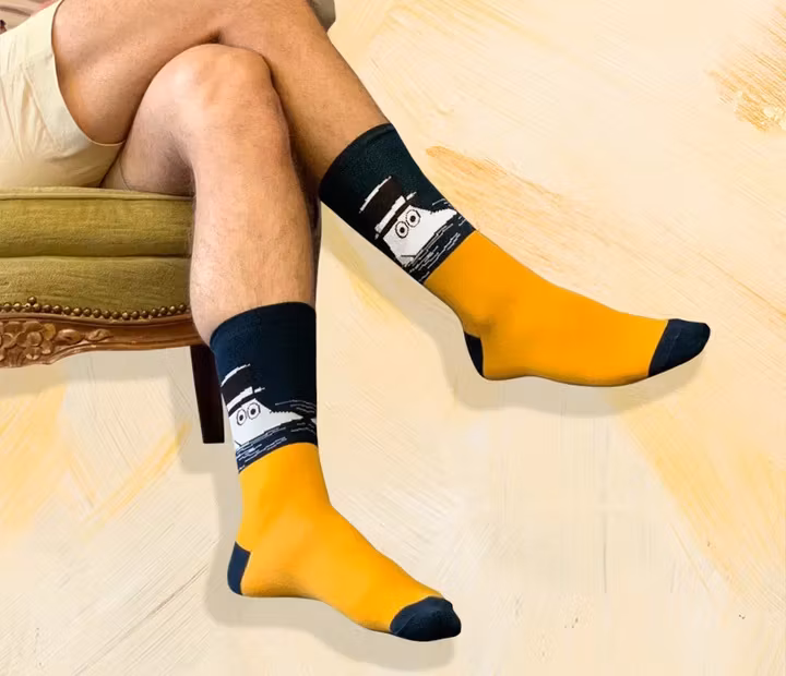 Herrstrumpor Muminpappan simmar från finska NordicBuddies. One size storlek 40-45 (EU).