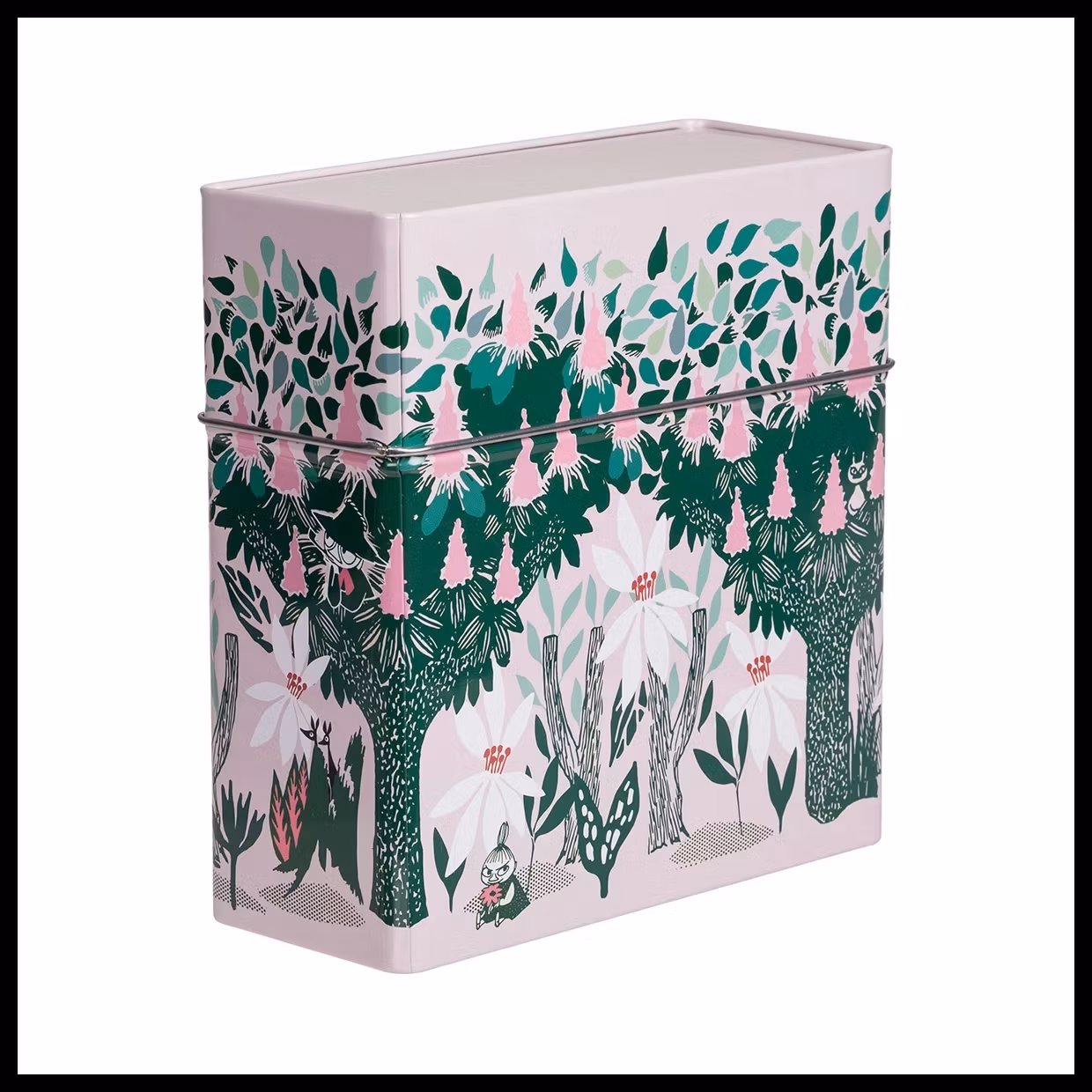 Burkens tidlösa design med fina pastellfärger och Mumin-karaktärer sprider värme och glädje i köket. Tillverkad i hållbar plåt med tättslutande lock som håller dina filter fräscha och skyddade. Handdisk och noggrann torkning rekommenderas.