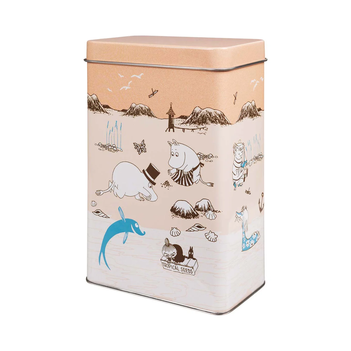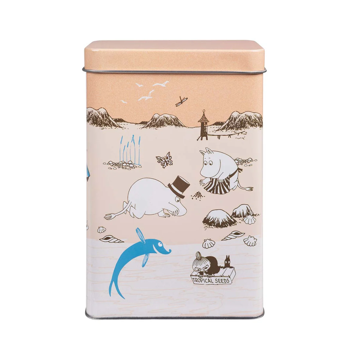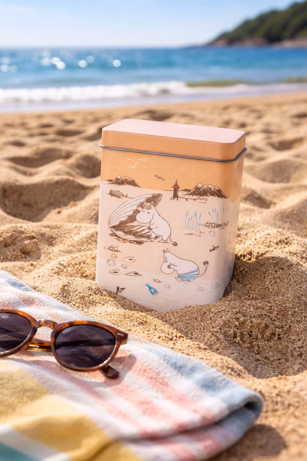 Ge ditt kök en känsla av sommar och frihet med denna charmiga Mumin-kaffeburk i varma orange toner. Motivet visar Mumintrollet och hans vänner under en bekymmersfri dag på stranden – en stund fylld av lek, lugn och havets stilla rytm, långt bort från måsten och tidtabeller.