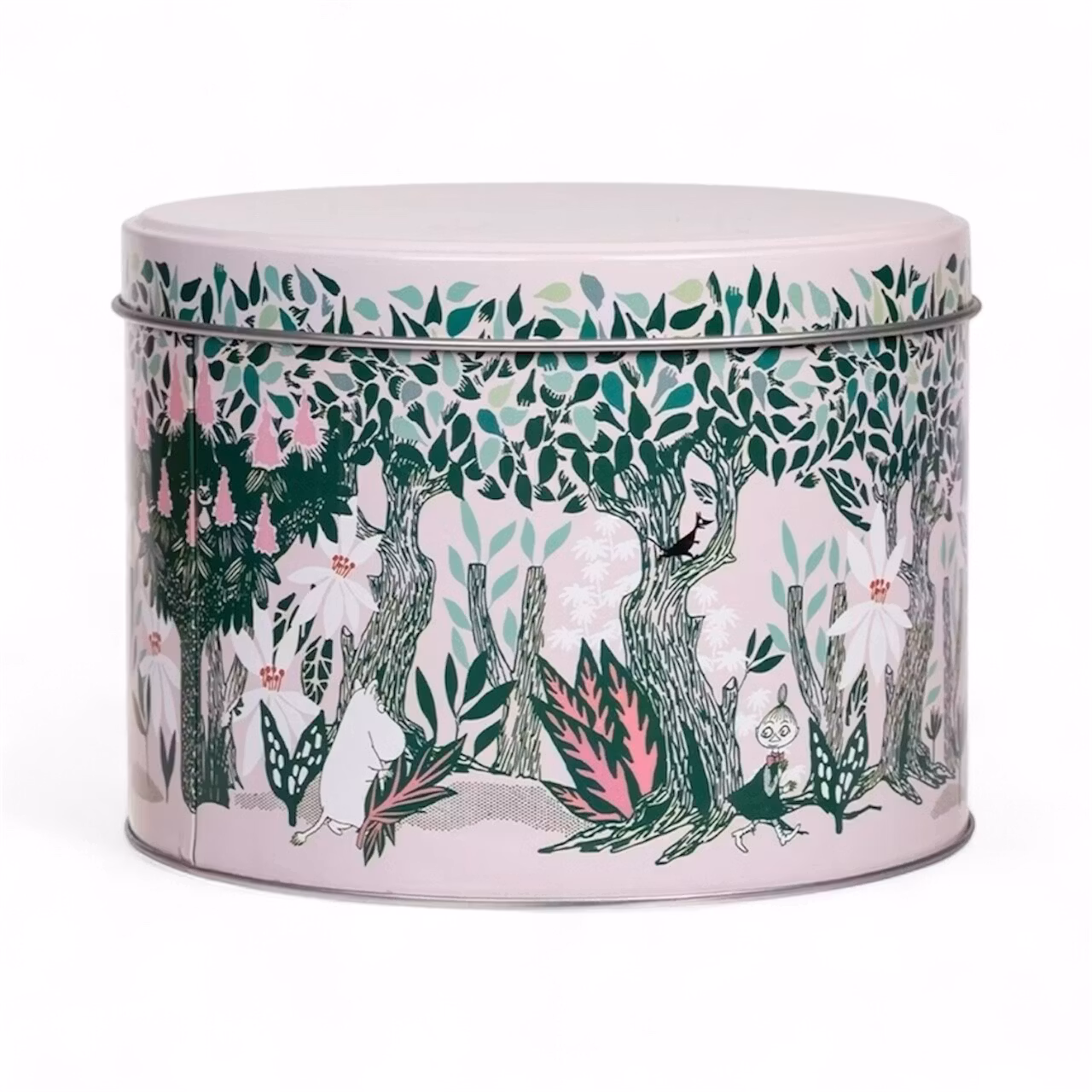 Låt vårens varma strålar flytta in i ditt hem med denna charmiga plåtburk Mumin Vårkastanj. Med ett ljuvligt rosa och grönt motiv där välbekanta Muminfigurer njuter av en stillsam försommardag i en blommande kastanjeskog, är denna burk lika mycket en prydnad som en praktisk förvaringslösning.