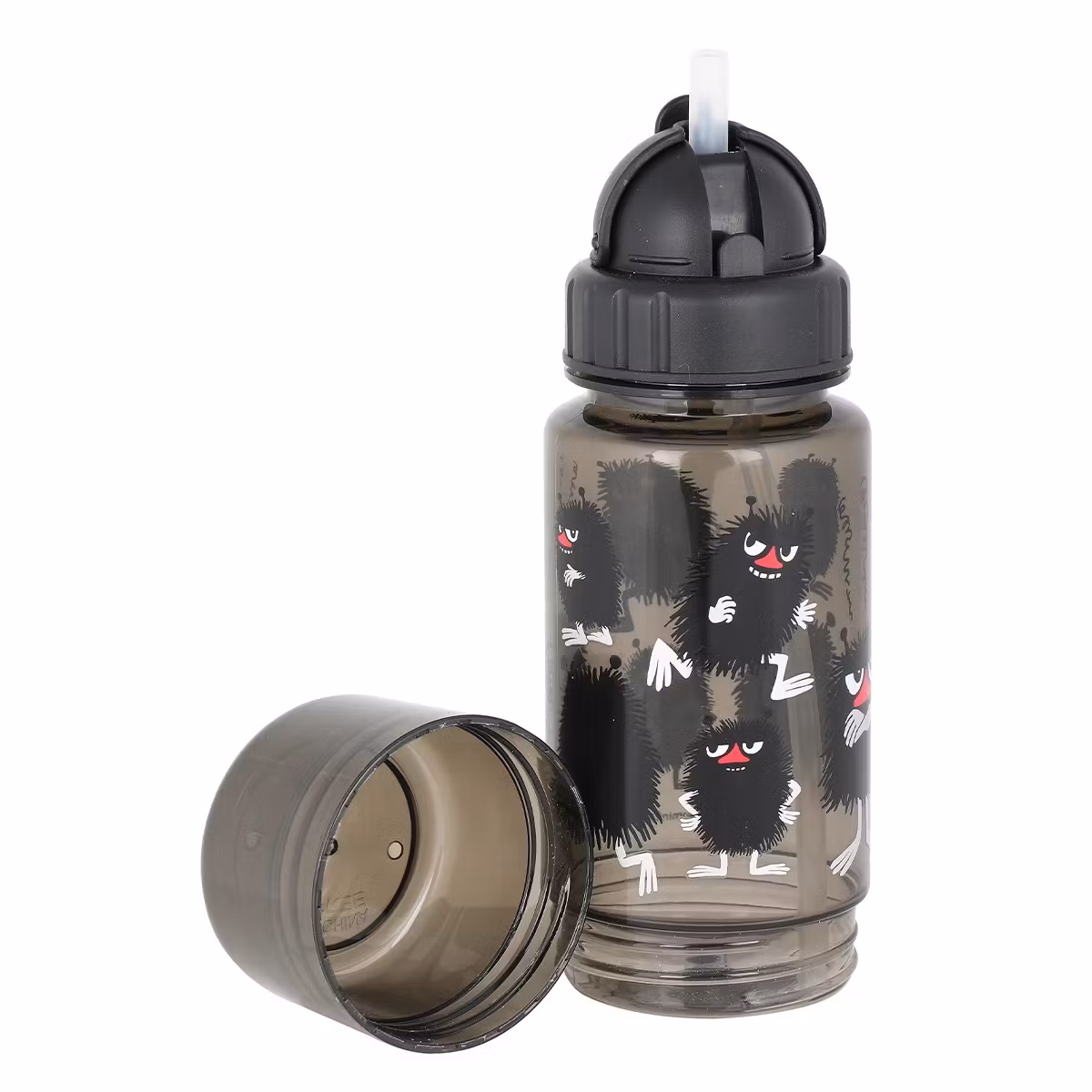 Mumin Stinky vattenflaska med sugrör, tillverkad i bpa-fri tritan och pp-plast.