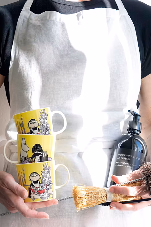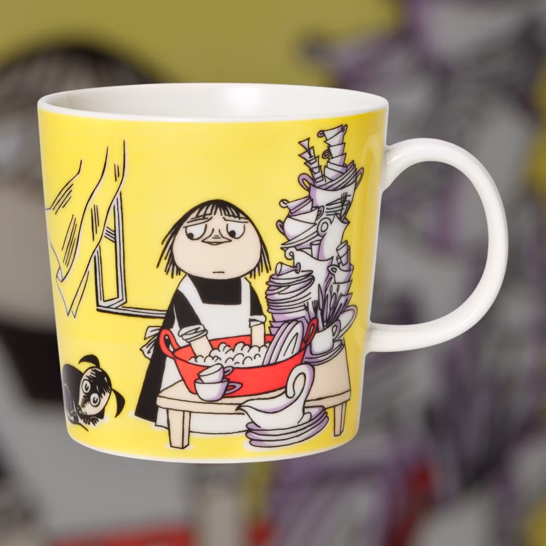 Motivet för Misan baseras på Tove och Lars Janssons tecknade serie ”Låtsaslek” från år 1956. Bilderna illustrerar Misan som diskar och skurar trasmattor. Motivet är nr 100 av alla tillverkade Muminmuggar.