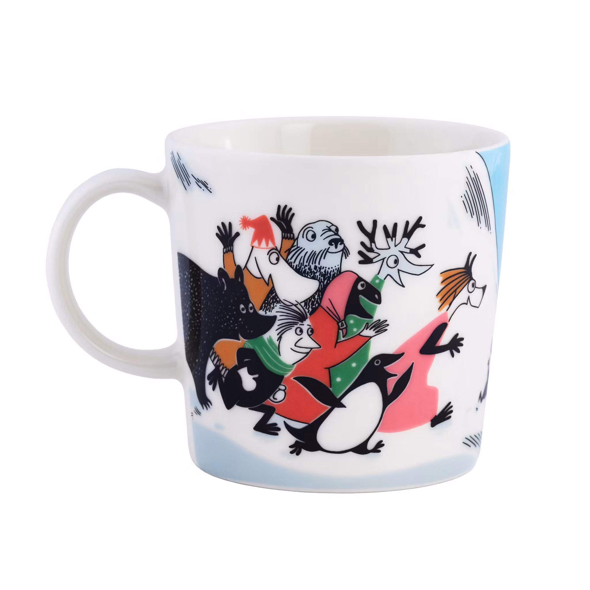 Fira vinterns spänning och mod med årets exklusiva Muminmugg från Arabia – Backhoppning. Denna säsongsmugg för vinter 2024 fångar ett hisnande ögonblick när Mumintrollet gör ett vågat hopp i backen – en berättelse fylld av mod, humor och vintermagi.