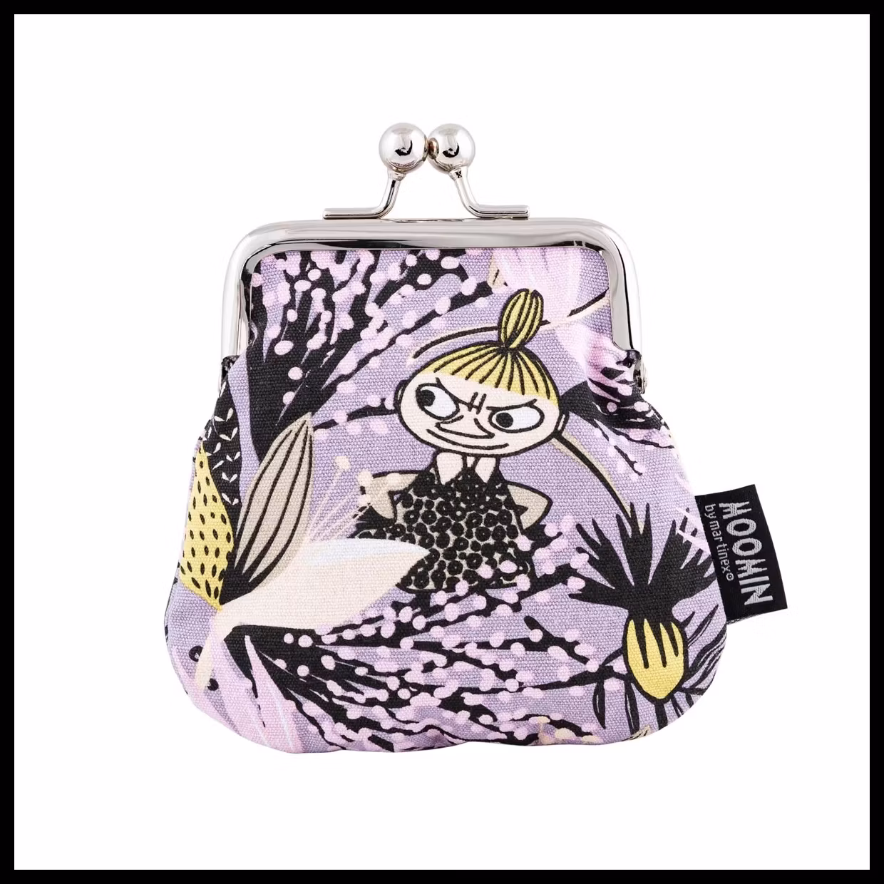 En liten börs/plånbok med Lilla My. Fin ljuslila färg, tillverkad av stadig bomullscanvas. Upptill finns det ett silverfärgat lås med knäppe i metall.
