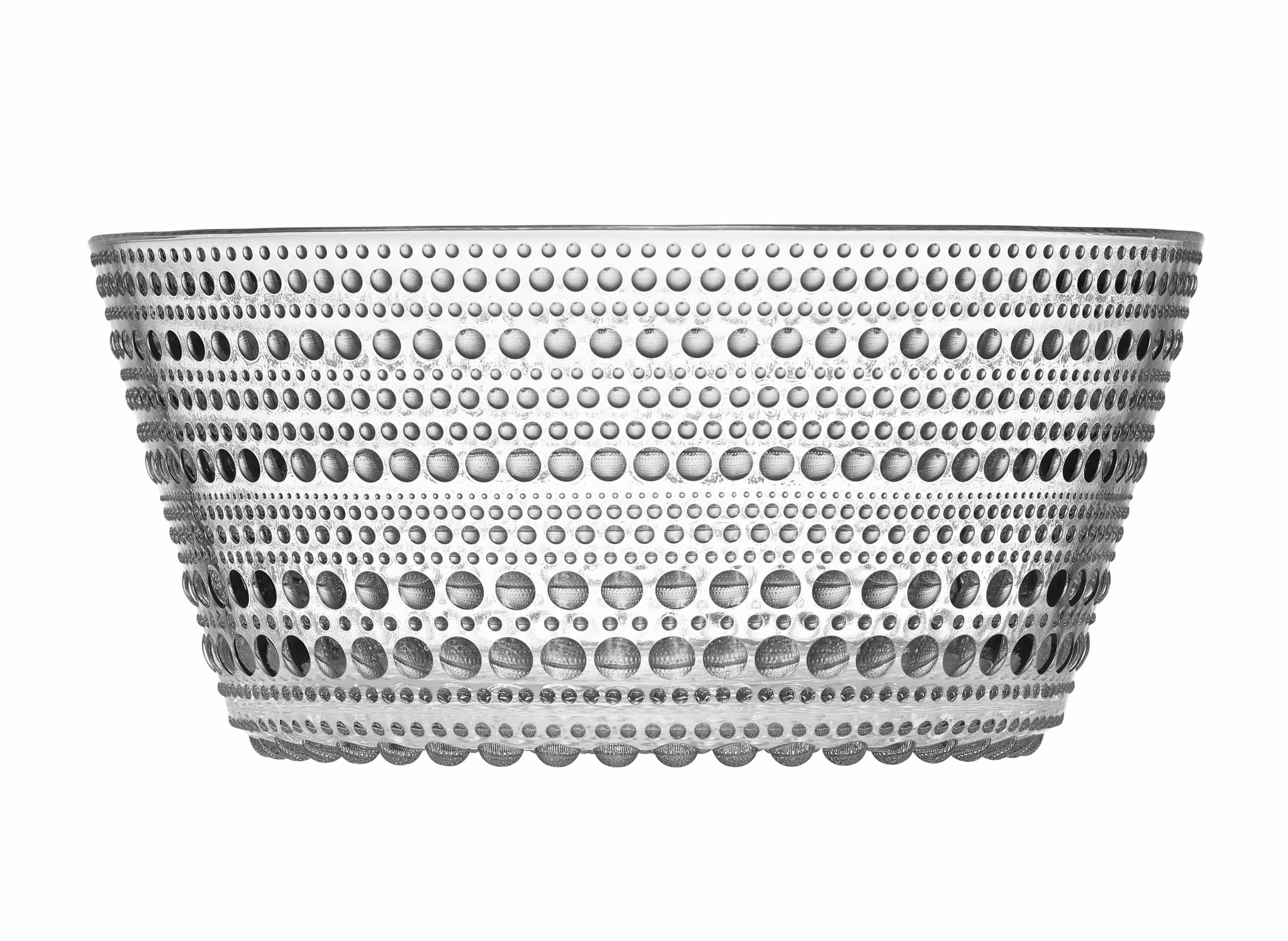 Det här är en vacker skål som tillhör den klassiska serien Kastehelmi som är en av Iittalas mest populära. Serien har fått sin inspiration från dagg som glittrar i gräset på morgonen. I denna skål kan du servera mattillbehör, som till exempel sallad eller pasta. Formgiven av Oiva Toikka år 1964.